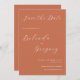Ein wunderschönes Design mit eleganter Schrift-Kalligraphie-Typografie auf einer Terrakotta verbrannt orange Hintergrund . Ideal für alle, die moderne minimalistische Designs Liebe haben. Eine stilvolle und trendige Hochzeit bewahrt das Date Card Design mit klassischen Elementen. Es stehen auch passende Hochzeitsstilleriedateien und andere Hochzeitsformate zur Verfügung.