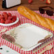 Schöne Hochzeit im Herbst-Papiertafel mit Terracotta und goldbeige Blume mit grünen Blätter. Die Einzelheiten des Glitzer werden simuliert. FÜR WEITERE PRODUKTE klicken Sie auf die Sammlung oben oder kontaktieren Sie mich