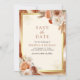 Erleben Sie Ihren Gast mit diesem eleganten Terrakotta-Thema Save the Date mit schönen rustikalen erdigen Blume vor einem Marmorboden mit QR Code für Hochzeitswebsite. Fügen Sie einfach Ihre Veranstaltungsdetails zu dieser leicht zu bedienenden Vorlage hinzu und schmücken Sie diese Karte mit Ihrem bevorzugten Foto, um sie zu einer einmaligen Save the Date-Karte zu machen.
