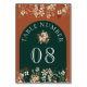 Terracotta Floral Wildblume Emerald Green Wedding Tischnummer