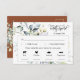 Die Posterkarte für Hochzeitsfeiern mit 4 Wahlmöglichkeiten bietet einen eleganten, modernen minimalistischen Stil mit Blätter aus gröberem Blattwerk, wunderschöner Kalligraphie und Schriftart aus gepflegter Schrift auf Terrakotta. Die Einfachheit und das saubere Design dieser RSVP Response Gehäuse Karte funktioniert gut mit allen Hochzeitsthemen und definitiv eine großartige Ergänzung zu Ihrer Hochzeit. Passen Sie einfach die Namen, das Datum, die Optionen für 4 Mahlzeiten und andere Informationen in ein paar einfachen Schritten an und personalisieren Sie es, um ihm eine angenehme persönliche Touch zu geben. Ikonen für die Mahlzeiten: Truthahn, Gans, Wild, Ente, Lamm, Schwein, Rind, Huhn, Meeresfrüchte und Vegetarier. Wenn Sie die Essenssymbole ändern möchten, klicken Sie auf die Schaltfläche "Bearbeiten mit dem Design-Tool", um die Essensoptionen zu personalisieren. Bitte beachten Sie: Die eleganten Schriftzeichen mit den Worten "freundlich reagieren" und "freundlich liefern", zusammen mit den Aquarellblättern eucalyptus Blätter Arrangements und anderen grafischen Artwork-Elementen wie den Linien und Rechteck Boxen können nicht bearbeitet, verändert, verschoben oder gelöscht werden. Sie sind repariert.