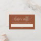 Frag den Gästen, ein Paket Windeln jeder Größe mitzubringen, um einen Sonderpreis zu gewinnen! Diese individuell anpassbare Gewinnerkarte enthält ein skurriles Skript und eine einfache Typografie. Diese Terracotta-Weinkarte ist perfekt für jede Babydusche und jede Saison. Personalisieren Sie diese durch Hinzufügen einer bestimmten Marke von Windeln oder anderen Details.