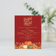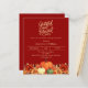 Terrakotta, gebrannter orangefarbener Hintergrund. Die Einrichtung ist mit Kürbissen und orangen und gelben Blumen geschmückt. Personalisieren Sie die Party-Details und fügen Sie sie hinzu. Text-Skript: Dankbar und gesegnet. 1 Blatt = 1 Einladung mit Druckkante bis Kante.