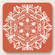 Dieses weiße Mandala sitzt auf einem dunkelorangen Hintergrund. Die Farben sind kreativ und warm. Teil der Erghenn Mandala Kollektion.