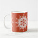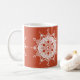 Dieses weiße Mandala liegt auf einem dunkelorangen Hintergrund. Die Farben sind kreativ und warm. Teil der Sammlung Fenten Mandala.