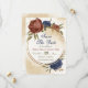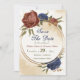 Schöner Erdton Save the Date Einladungen mit Terrakotta und marineblau Blumen mit grünen Blätter . Die Einzelheiten des Glitzer werden simuliert. FÜR WEITERE PRODUKTE klicken Sie auf die Sammlung oben oder kontaktieren Sie mich