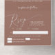 Elegante und minimale Hochzeitseinladungskarte mit einer RSVP-Karte mit einem modernen Skripttext auf Terrakotta-Hintergrund.
