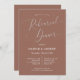 Minimal Hochzeitsdinner mit moderner Script-Schriftart auf Terrakotta-Hintergrund. Die Probe ist sehr gemütlich. Diese Vorlage enthält bereits Texte, die alle Informationen enthalten, die Sie für Ihr Ereignis benötigen. Texte sind online leicht anpassbar.