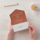 Diese minimalistische Hochzeitseinladung mit eleganter Typografie auf Terrakotta-Hintergrund. Die Einladung enthält eine perforierte RSVP-Karte, die individuell adressiert oder links werden kann, damit Sie die Adressdaten Ihres Gastes handschreiben können. Entwickelt von Thisisnotme©