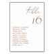 Diese moderne Tischnummern-Karte verfügt über eine Terrakotta handgeschriebene Schrift und minimalistische Typografie. Personalisieren Sie diese, indem Sie Ihre Daten hinzufügen. Diese Tischkarte ist ideal für Hochzeiten, Brautpartys, Babyduschen und andere Veranstaltungen.