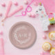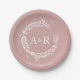 Ein schlichter, blumengeschmückter Imitat mit monogramm rosafarbenen Tellern. Einfach mit Ihren Daten personalisieren. Teller aus geometrischem Foto, moderne boho Papier Teller bearbeitbar, anpassbar, kalligrafisch handgeschriebener Schriftart, einfach, elegant.