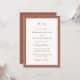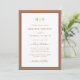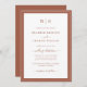 Terracotta Monogram Hochzeitseinladung. Machen Sie Ihre Hochzeitseinladung so unvergesslich wie Ihr besonderer Tag mit diesem schicken und stilvollen Design. Dieses moderne, nur in Text gehaltene, minimalistische Design mit klassischer traditioneller Touch besticht durch ein handgeschriebenes Kalligrafieschrift mit einem klassischen Rahmen aus Terrakotta/gebrannt Orange. In der Simple Elegant Terracotta Border Wedding Suite finden Sie koordinierende Produkte.