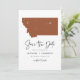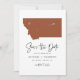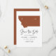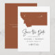 Mit diesem Montana-Staat-Ankündigung Datum freihalten kündigen Sie Ihr Hochzeitsdatum an. Es zeigt eine Abbildung der Karte von Montana, einfache Typografie und ein handgeschriebenes Skript. Personalisieren Sie diese durch Hinzufügen von Namen, Datum, Ort und anderen Details. Dieser Terracotta-Staat von Montana Save the Date ist perfekt für jedes Hochzeitsthema.