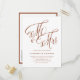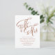 Diese individuell gestaltbare Terracotta Hochzeit Einladung Postcard bringt eine perfekte Mischung aus rustikaler Eleganz und modernem Komfort. Mit "Mr. and Mrs." in schöner rustikaler Kalligraphie. Personalisieren Sie diese durch Hinzufügen von Namen, Datum, Uhrzeit, Ort und anderen Details. Diese kalligraphische Hochzeitseinladung Postkarte ermöglicht es Ihren Gästen, einfach auf die Veranstaltungsdetails zuzugreifen, UAWG oder Ihre Hochzeitswebsite mit einem personalisierten QR-Code einzusehen. Ob Sie eine rustikale Hochzeit oder eine moderne Hochzeit veranstalten, diese individuell anpassbare QR Code Hochzeitseinladung fügt Ihrer Feier eine persönliche und praktische Touch hinzu.