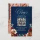 Elegant Navy Blau, Terracotta , Orange erthy floral Thema QR Code Foto RSVP Karte mit elegantem Bouquet von Navy Blau, Terracotta Farbe Rose Peonies und grüne eucalyptus Blätter. Bitte kontaktieren Sie mich für Hilfe bei der Anpassung oder wenn Sie ein anderes Produkt mit diesem Design benötigen.