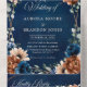 Elegant Navy Blau, Terracotta , Orange erthy floral Thema Hochzeit Einladung mit elegantem Bouquet von Navy Blau, Terracotta Rose Peonies und grünen eucalyptus Blätter. Bitte kontaktieren Sie mich für Hilfe bei der Anpassung oder wenn Sie ein anderes Produkt mit diesem Design benötigen.