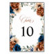 Terracotta Navy Blue Greenery Geometric Wedding Tischnummer