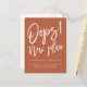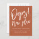 Hoppla! Neuer Plan, Moderne lustige lässige Skriptehe ändern das Datum mit einer handgeschriebenen Stil Typografie, alle Farben sind bearbeitbar, mit einfachen und minimalistischen Weiß, um die Verschiebung Ihrer Hochzeit und neue Pläne mit Erde Ton boho terracotta bekannt zu geben.