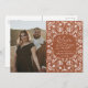 Teilen Sie Ihr Hochzeitstag mit diesem charmanten Terracotta Papel Picado Foto Save the Date Postkarte. Eine Mischung aus traditionellem mexikanischen Stil und modernem Design, ideal für Hochzeiten in Urlaubsort oder Feiern. Personalisieren Sie Ihre Foto- und Hochzeitsdetails. Karo in unserer Kollektion für passende Einladungen und Schreibwaren, um das Aussehen zu vervollständigen.