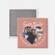 Terracotta photo modern script save the date magnet featuring a heart-shaped photo window, warm terracotta background, and hand-lettered script text in white. This design showcases your engagement photo while clearly sharing the wedding date and location in a rich, earthy color palette that feels modern yet timeless. Ideal for weddings, fall celebrations, destination events, or vow renewals with a warm, natural aesthetic. Easily personalize with your details.