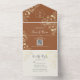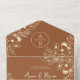 Einfache, elegante, boho blumige, Wildblume Gold und gebrannte orange Terracotta All-in-One Hochzeitseinladung mit QR-Code und Monogramm.