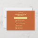 Fügen Sie eine elegante Touch zu Ihrer Hochzeit lädt mit dieser Terracotta und Gold Hochzeit RSVP Antwortkarte. An der Vorderseite befindet sich ein Rose-Design mit "Save the Date", dem Namen des Ehepaares und dem Datum der Hochzeitsfeier. Auf der Rückseite finden Sie die Antwortdetails einschließlich der Frist für die UAWG und Auswahl der Speisen. Verwenden Sie die Vorlage zum Personalisieren.