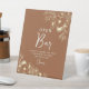 Elegante, moderne, boho, rostorange-orange Terrakotta Hochzeit Open Bar podestal Zeichen mit goldblühenden Spitzen und einfache Kalligraphie Skript.