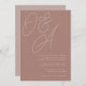 Eine schöne typografische Monogramm-Hochzeitseinladung mit Ihren Initialen in überdimensionalen Schriftzeichen oben, in Ton auf Tontönen für einen Wasserzeichen-Effekt. Personalisieren Sie Ihre Hochzeitsdetails in klassischen Serifenschriften, die rechts unten ausgerichtet sind. Unsere Terracotta-Farbtöne sind ein eleganter Mix aus erdigen Neutralen, mit warmen, rosigen Taupe-Schriften auf Terracotta-Tonhintergrund.