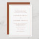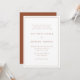 Mit dieser eleganten Einladung laden wir Sie zu Ihrer Hochzeit ein. Diese minimalistische Hochzeitseinladung enthält Formulierungen, in denen die Eltern der Braut untergebracht sind. Es zeichnet sich durch einfache Typografie, moderne Kalligraphie und eine einfache Grenze aus. Personalisieren Sie diese Terracotta Hochzeitseinladung durch Hinzufügen Ihrer Veranstaltungsdetails. Diese offizielle Hochzeitseinladung ist perfekt für jede Hochzeitszeit.