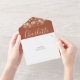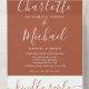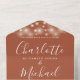 Alles in einer Hochzeitseinladung mit hübschen Saitenlichtern, elegantem Schriftnamen und Monogramm-Initialen auf Terrakotta-Hintergrund. Die Einladung enthält eine perforierte RSVP-Karte, die für Sie individuell adressiert oder links als leere Karte für die Handschrift der Adressdaten Ihres Gastes verwendet werden kann. Entwickelt von Thisisnotme©