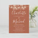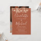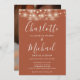 Mit hübschen Saitenlichtern und prächtigen Stilbezeichnungen kann diese elegante Hochzeitseinladung personalisiert werden mit den Details Ihres Hochzeitstages in schick weißer Schrift auf Terrakotta-Hintergrund mit dem von Ihnen gewählten Foto auf der Rückseite. Entwickelt von Thisisnotme©