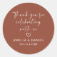 Fügen Sie Ihren Gastgeschenken eine warme, erdige Touch mit diesem runden Aufkleber mit Terrakotta-Thema hinzu. Dieser Aufkleber mit der Botschaft Dankeschön für das Feiern mit uns in einem modernen Drehbuch ist das perfekte Finishing-Detail für Hochzeiten, Brautpartys oder besondere Anlässe mit einer natürlichen oder boho Palette. Personalisieren Sie es so, dass es Ihrem Ansehen entspricht und verlasst einen bleibenden Eindruck auf Ihre Gäste.