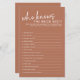 Genießen Sie Ihr Brautparty mit der Terracotta Who Know The Bride Best Brautparty Game! Dieses minimalistische Spiel verleiht jedem Brautparty modernen Flair mit seinem sauberen, zeitgenössischen Design. Mit durchdachten Anleitungen, um die Persönlichkeit und Vorlieben der Braut zu enthüllen, fördert dieses Spiel das Lachen und den freundlichen Wettbewerb zwischen den Gästen. Die Braut wird sich freuen zu entdecken, wer nahe Aufmerksamkeit auf die kleinen Details, die sie einzigartig machen.