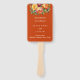 Bleibe cool und stilvoll an deinem besonderen Tag mit diesem personalisierten Vintagen Floral Wedding Program Hand Fan! Dieses elegante Design mit bordeauxroten und buttergelben Rosen und Bäckereien mit schlängelgrünen Blätter ist ein Set vor einem schicken Terrakotta-Hintergrund für eine warme und romantische Touch. Die Zeremonie wird wunderschön in einem eleganten, modernen und Drehbuch-Schriftart in Soft Cream präsentiert und ergänzt so perfekt Ihre Hochzeit zum Thema Sommergarten. Ein praktisches und charmantes Detail für Ihre Gäste, dieser handgearbeitete Fan des Hochzeitsprogramms ist sowohl funktional als auch ein schöner Sake aus Ihrem großen Tag.