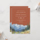 Diese elegante Terrakotta-Aquarell-Berg-Wildblumen-Hochzeitseinladung kann mit Ihren Informationen in schicker Typografie und Ihrem Hochzeitswebsite-QR-Code auf der Rückseite personalisiert werden. Entworfen von Thisisnotme©