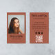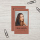 Erstellen Sie mit dieser modernen Terrakotta-Foto-Visitenkarte einen stilvollen und unvergesslichen ersten Eindruck, die für Fotografen und kreative Profis konzipiert ist. Der warme, erdige Ton verleiht einen trendigen, eleganten Touch, während auf der Vorderseite Ihr Porträtfoto und auf der Rückseite ordentlich organisierte Kontaktdaten, Social-Media-Icons und ein scannbarer QR-Code für den sofortigen Zugriff auf Ihr Portfolio angezeigt werden.