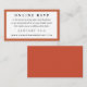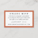 Klassische Art und ein eleganter Rahmen der reichen orangeroten Terrakotta geben dieser on-line-UAWG-Antragkarte die Vielseitigkeit, um mit aller Art der Einladungen zu integrieren, justieren gerade die Hintergrundfarbe, um Ihre Ereignisfarben zusammenzubringen. Vergessen Sie nicht, die Antwort durch Datums- und Website-URL-Text dieser on-line-UAWG-Einsatzkarte zu personifizieren und Ihren Gast auf Ihre Hochzeitswebsite allen zu verweisen beim Retten von etwas Bäumen und von Geld auf Porto.