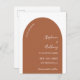 Terracotta verbrannte orange und weiße Bogen moderne Budget Hochzeit speichern das Datum.