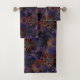Terrakotta, violette Blumen auf samtig grau Badhandtuch Set
