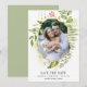 Unsere Terrarium-Save the Date-Karte umrahmt Ihr Lieblings-Foto mit goldgeometrischen Elementen und üppig wasserfarbenen botanischen Blätter und Farnblättern. Personalisieren Sie mit Ihren Namen, Hochzeitsdatum und Ort unten.