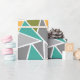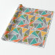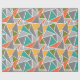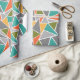 Dieses Papier hat ein modernes Design von Dreiecken, das den Terrazzo-Boden in Grautönen, Türkis, Orange, Gold und Grün aussieht.