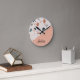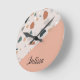 Diese Uhr ist ein halbes massives Stück Pfirsich und halbes Terrazzo Druck. Die Farben sind in modernen neutralen Farben oder in Erdtönen gehalten. Sie können es auch einzigartig machen, indem Sie es personalisieren. Diese dekorative Wanduhr würde auf modernen, minimalen und sogar Bauernhäusern Zuhause dank ihrer Farbgebung gut aussehen.