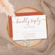 Eine elegante Terracotta Signatur Script RSVP Karte mit Ihren Details Set in schicken Typografie. Entwickelt von Thisisnotme©