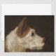 Dieses Design zeigt ein Gemälde des englischen Künstlers James Ward (1769-1859), der sich auf die Darstellung von Tieren spezialisiert hat. Es zeigt eine Profilansicht eines Hundekopfes. Die Rasse des Hundes ist ein Terrier. Der Hund hat weißes Fell und braune Ohren, die am Ende stehend sind. Seine großen braunen Augen und seine nasse Nase sind auf dem Gesicht zu sehen. Der Hund scheint sogar sanft zu lächeln.