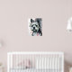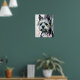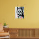 Terrier Pup Portrait, Whimsical, Grau, Schwarz, Weiß, mit einem Pop von Rosa Rot Orange und aquamarin.