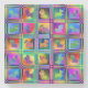 Das Bild zeigt eine lebendige Sammlung von Hundelokulturen, die in einem Schachbrettmuster angeordnet sind. Jeder Hund zeigt eine einzigartige Kombination von Farben und Mustern und schafft so eine spielerische und lebendige Komposition.