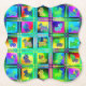 Das Bild zeigt eine lebendige Sammlung von Hundelokulturen, die in einem Schachbrettmuster angeordnet sind. Jeder Hund zeigt eine einzigartige Kombination von Farben und Mustern und schafft so eine spielerische und lebendige Komposition.
