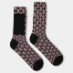 Ein Muster bestehend aus wiederholten geometrischen Mustern deckt den gesamten Rahmen auf eine tessellationsähnliche Weise ab. Braune Farbtöne und rosa Farbtöne erzeugen einen dreidimensionalen optischen Effekt, der einer gesteppten Oberfläche ähnelt.
