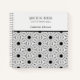 Notebook in Schwarz/Weiß mit elegantem, fast spitzenähnlichem Muster und Blume. Die drei Bereiche mit Text können auf Ihre Wortwahl angepasst werden.