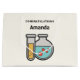 Geschenkbeutel mit einer niedlichen Abbildung eines Reagenzglases mit gelber Flüssigkeit und einem abgerundeten Kolben/Becherglas mit grüner Flüssigkeit mit roten Blasen.